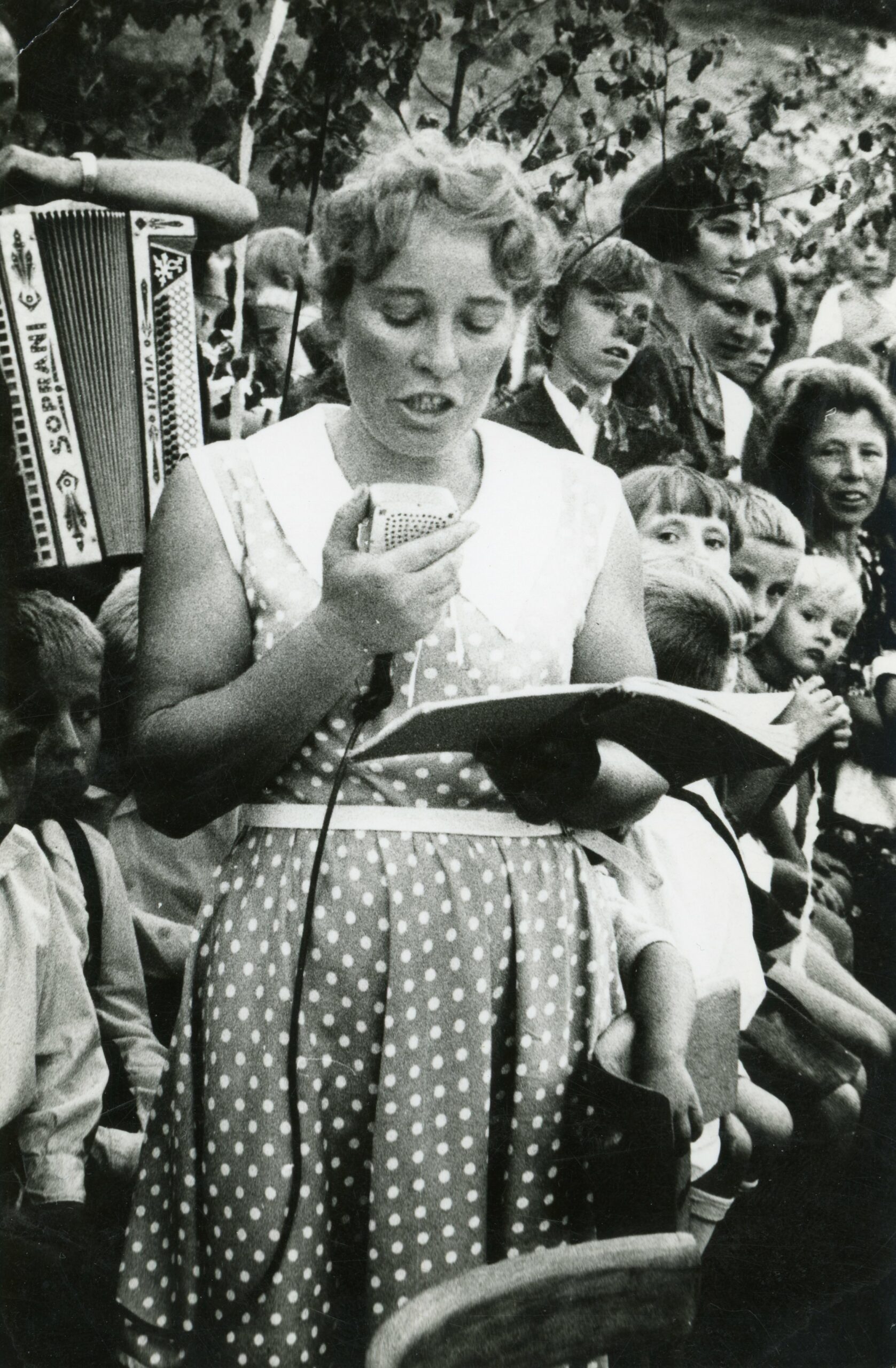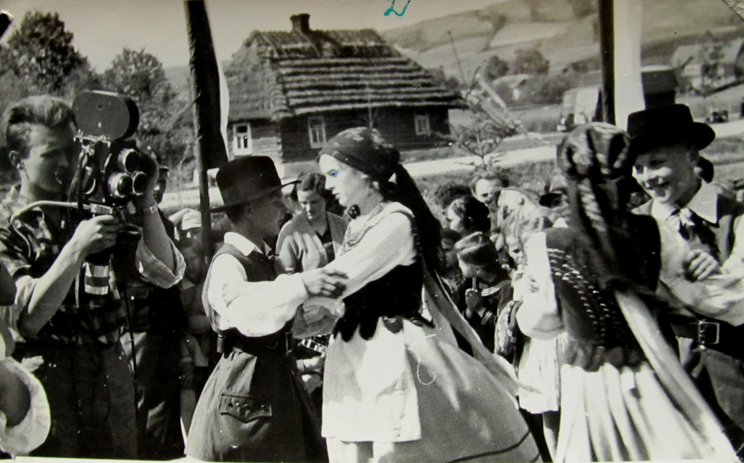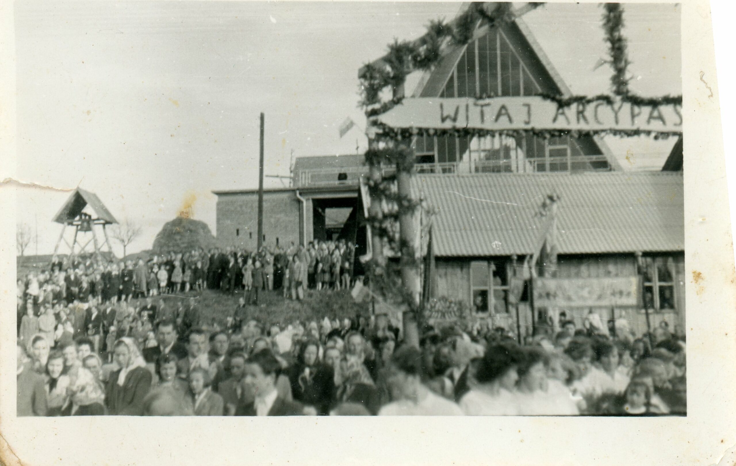 Uroczystość w Górnym Chmielniku koło baraku, Paulina Adela Filip, lata 60. XX w.
