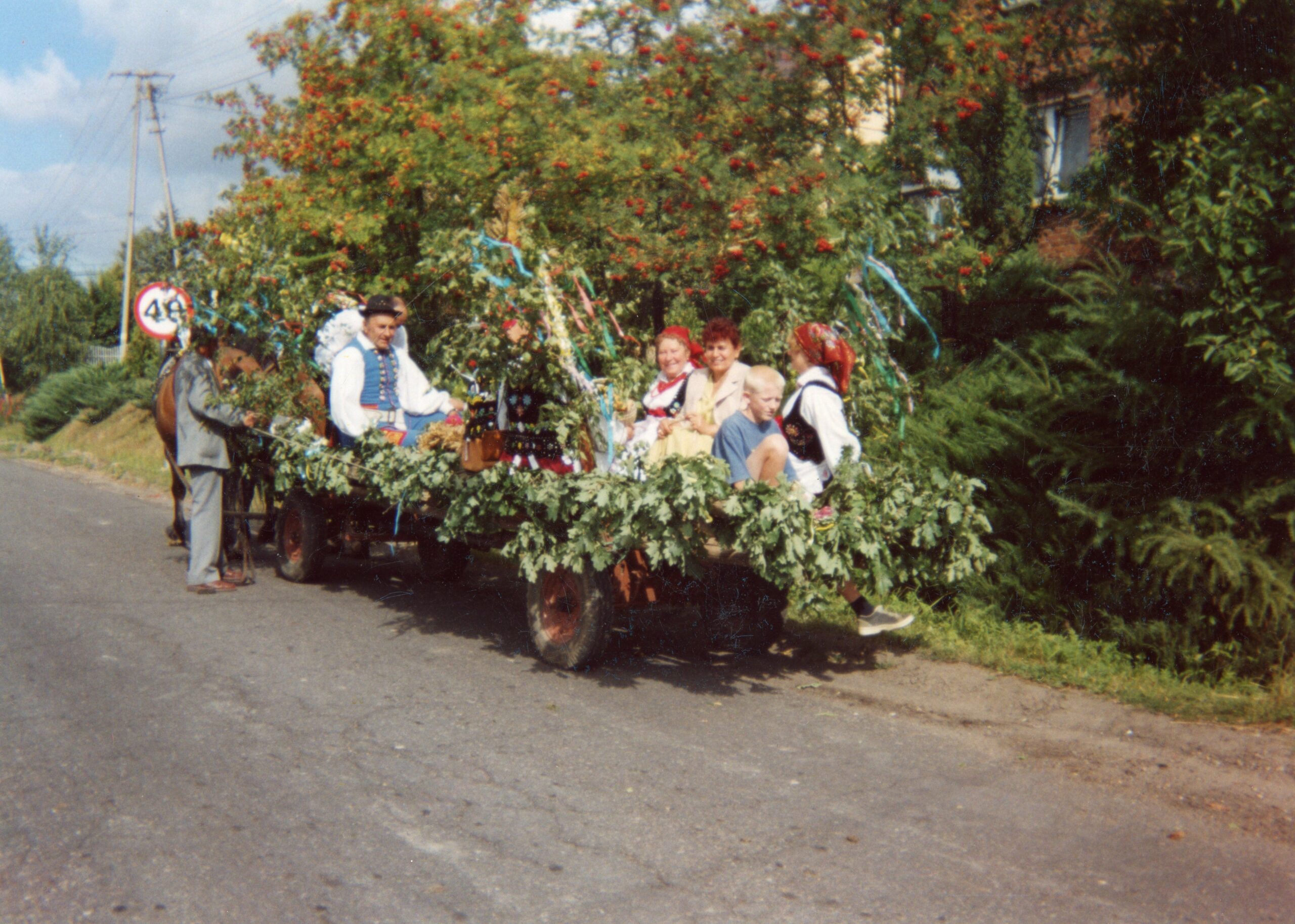 Korowód dożynkowy, na zdjęciu m. in. Paulina Adela Filip, Maria Filip, Marian Zięba, lata 90.