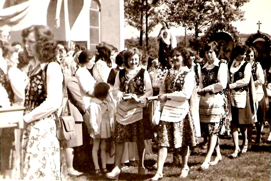 Procesja wokół kościoła w Chmielniku, lata 60.