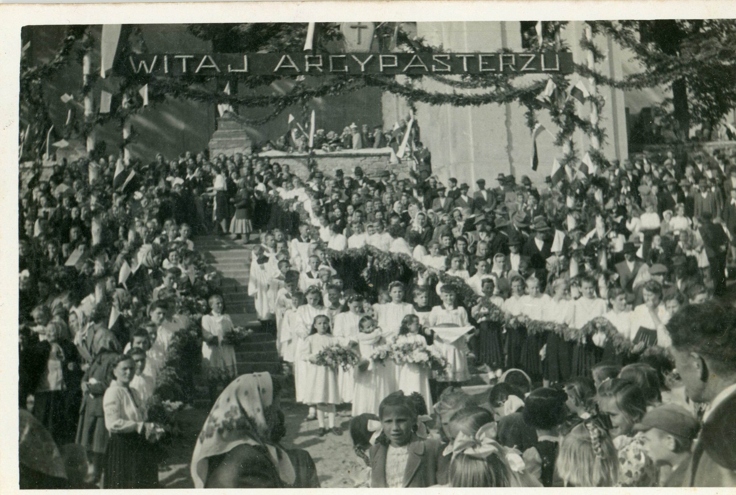 Powitanie biskupa w kościele w Chmielniku, lata 40/50