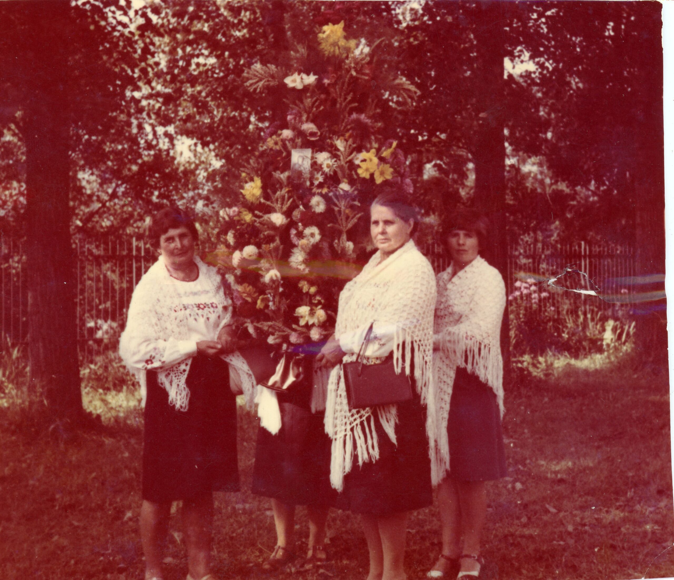 Dożynki parafialne w Chmielniku, od lewej: Genowefa Najda, Aniela Madera, Maria Socha, 1980 rok